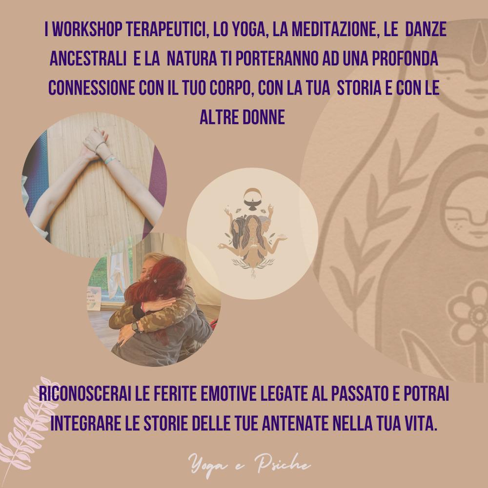 I workshop terapeutici, lo yoga, la meditazione, le danze ancestrali e la natura ti porteranno ad una profonda connessione con il tuo corpo, con la tua storia e con le altre donne.
